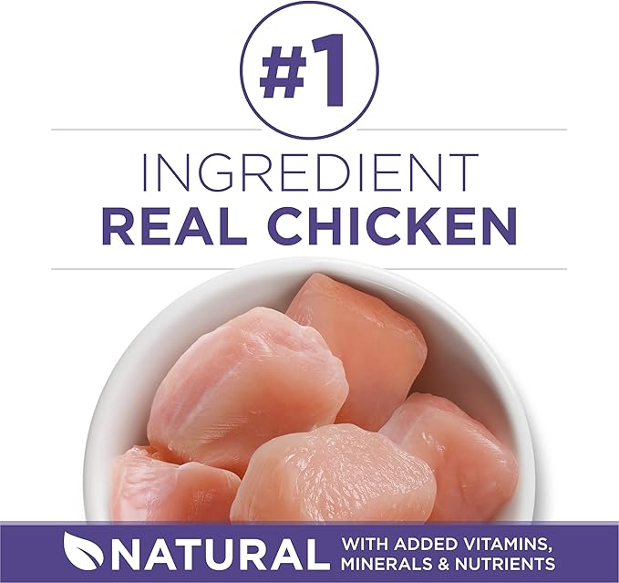 - Real chicken is the number 1 ingredient in this high-protein cat food recipe, which supports strong muscles, including a healthy heart