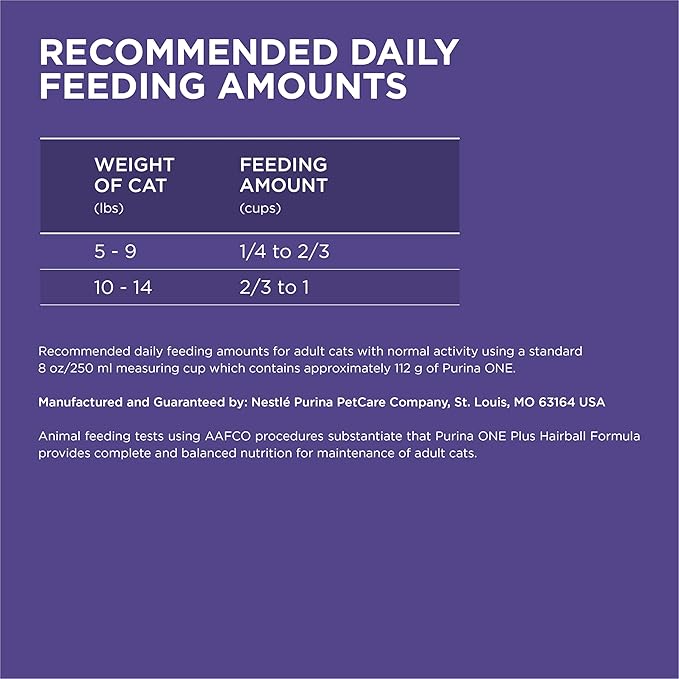 Purina ONE Natural Cat Food for Hairball Control, +PLUS Hairball Formula - 7 lb. Bag