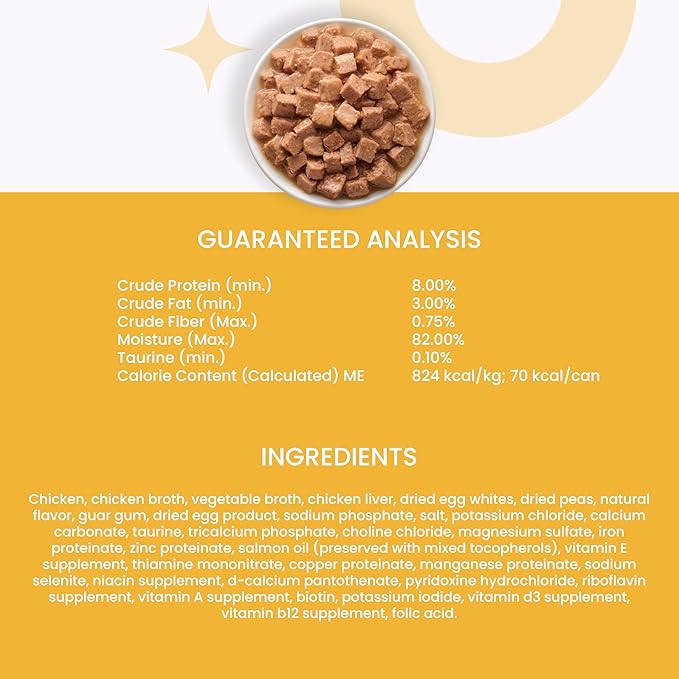 - Single Protein, Poultry is #1 Ingredient - Since the dawn of time, cats have loved their protein—so that’s why this dish is packed with delicious, succulent chunks of the good stuff: farm-raised chicken.