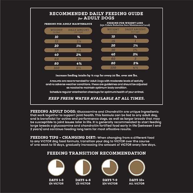 - HIP & JOINT HEALTH: This VICTOR Purpose senior and adult dog food provides glucosamine and chondroitin to help support long-term hip and joint health, helping promote mobility