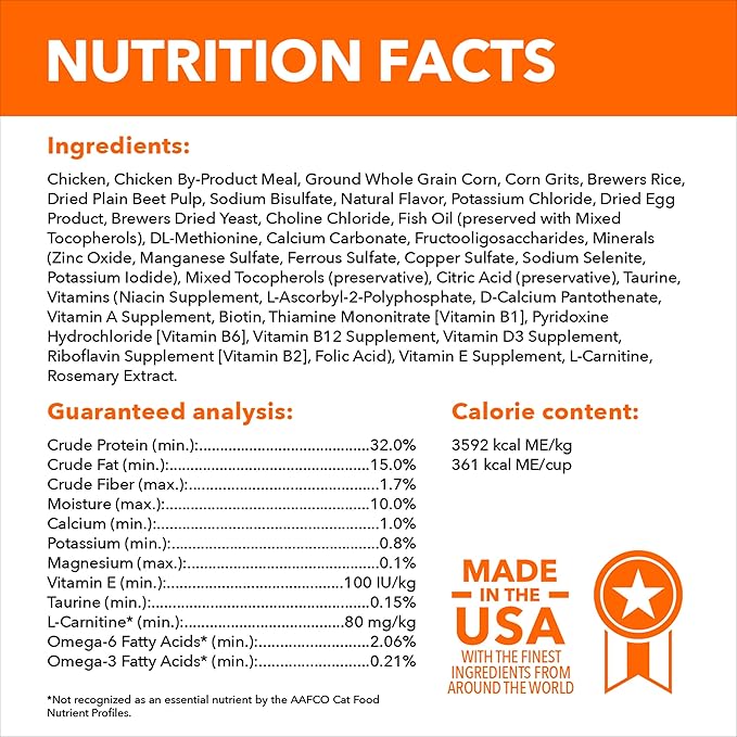 - Complete and Balanced for Adult Cats: 100% nutrition, 0% fillers, this dry cat food supports whole-body health with essential nutrients and is enriched with antioxidants for a strong immune system