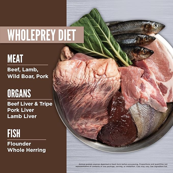 - ORIJEN dog food kibble containing up to 90 percent quality animal ingredients*, including WholePrey ingredients like bones and organs to mimic what your dog's ancestors consumed in the wild