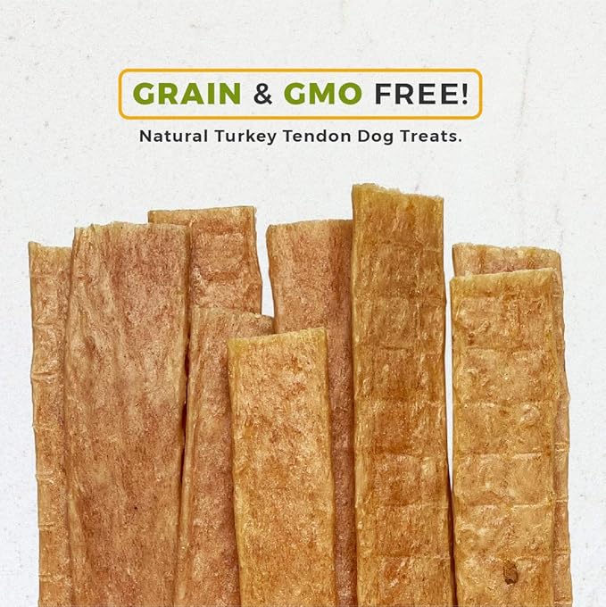 - WHY GIVE YOUR DOG OUR AMERICAN MADE TURKEY TENDONS? Sourced, Processed & Packaged in the USA. The turkey is humanely raised, free range. No added hormones, No antibiotics, No steroids. · Single Ingredient. · Merely dehydrated to a shelf stable moisture, so No preservatives. · Our turkey breast tendons are jumbo chews. These turkey tendons will make both of you happy. · We’re sure that your dog deserves a superior tendon and our quality fits the bill.