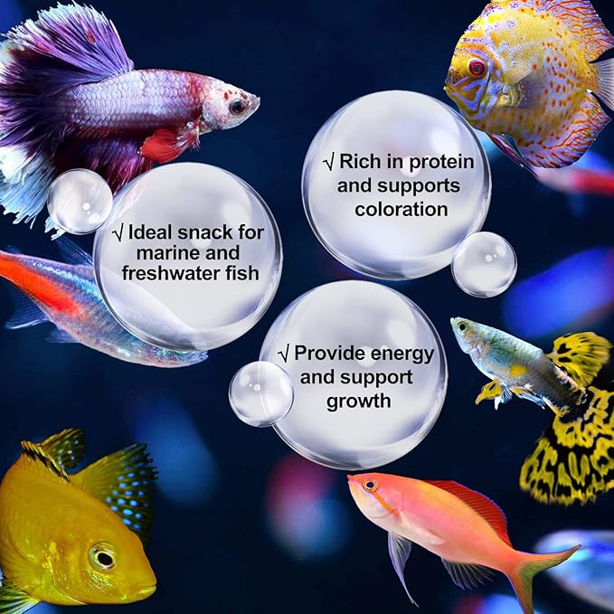 - ✔SAFE ALTERNATIVE - Freeze dried blood worms are just as nutritious as live food, without the risk of bacteria or parasites. FEEDING INSTRUCTIONS: Feed as a part of a varied diet, two to three times a week in conjunction with other fish foods, feed only as much as your fish can consume within 3-5 minutes. Best food for Neon Fish, Guppies Fish, Angel Fish, Betta Fish, Discus, Catfish, Cichlids, Goldfish, Anthias, turtle and more!