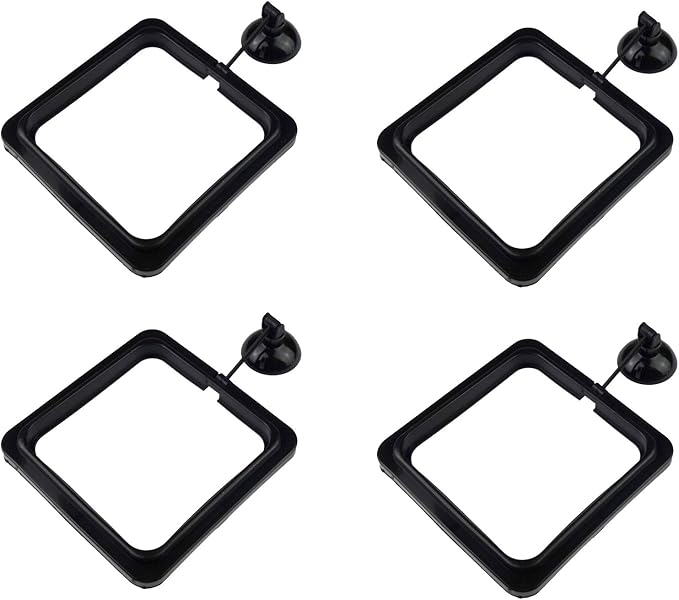 4 Pack Aquarium Fish Feeding Ring Floating Food Feeder, Square Shape with Suction Cup, Black