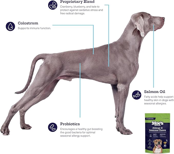 - Vet-Formulated, Clinically Inspired: These dog itch and allergy relief chews are created in partnership with veterinary experts and built on clinically studied blends to deliver consistent, reliable immune and allergy support. Moe’s allergy treats for dogs are backed by lab-tested quality standards you can trust.