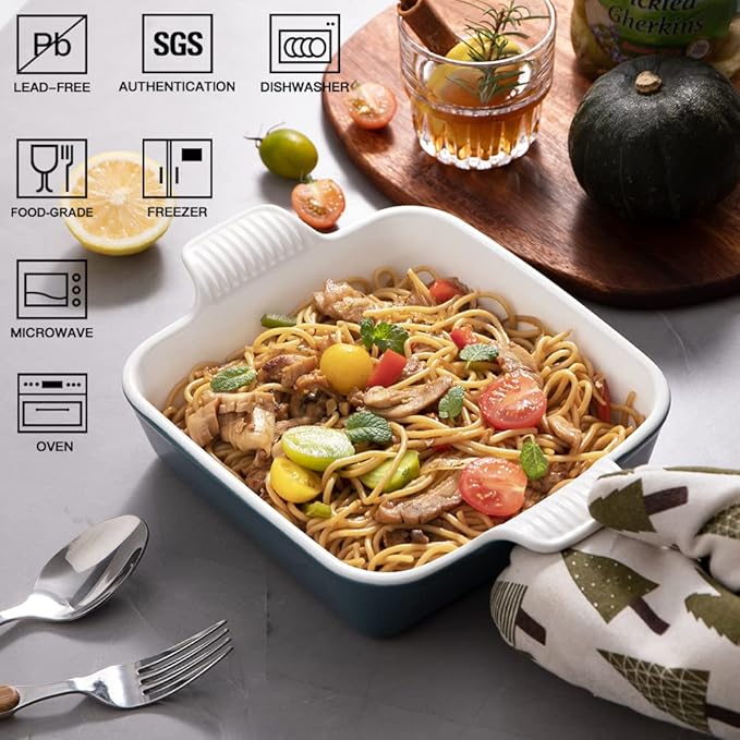 - Convenient Double Handle - Side handles with striped design help ensure a firm grip during transportation, and make taking the baking dish out of the oven a breeze. It's beautiful design let you take the baking dish from oven to table.