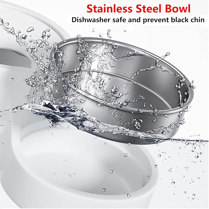 - 【Prevent Black Chin】The stainless steel bowl does not easily accumulate stains and dirt, which effectively prevents black chin. It is easy to clean and can hold 9.5oz food.