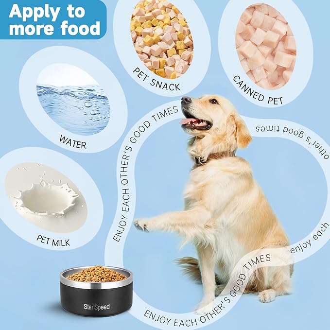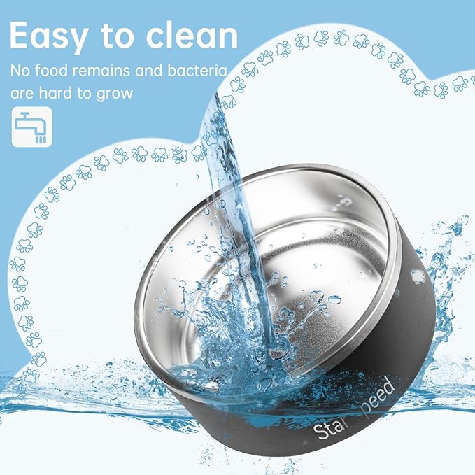 - 【Non-slip and No spill】 StarSpeed dog water bowls are weighted dog bowls with non-slip rubber rings. These designs prevent dog bowls from slipping and food and water spills. This feature is especially beneficial when using it as a dog food bowl or a large dog bowl