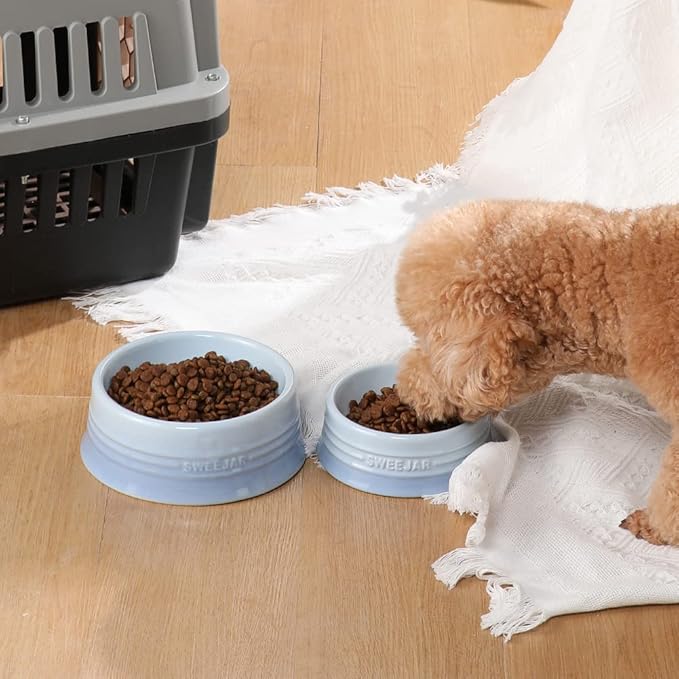 - Non Skidding - SWEEJAR dog bowls are made of food grade porcelain, microwave & dishwasher safe, easy to clean. The ceramic is heavy to help keep the bowl upright when dog eat food. No messy floors to clean.