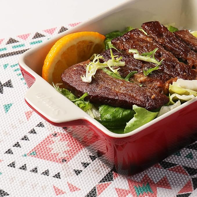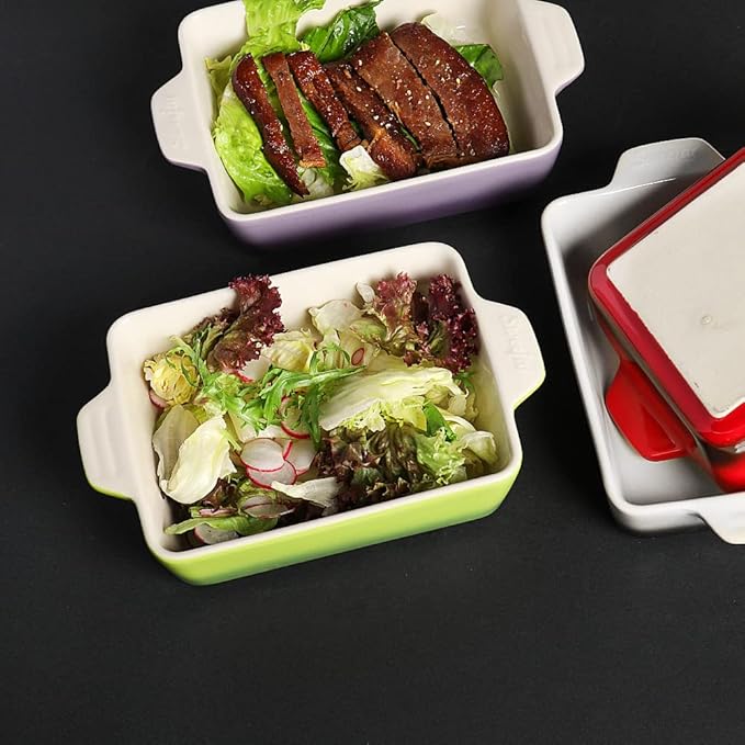 - 【Stylish Rectangular Baking Dish】The rectangular baking dish is equipped with a double handle design for easy food transport from the oven to the table. It is also a charming decoration in your kitchen and dining table which may impress your guests!