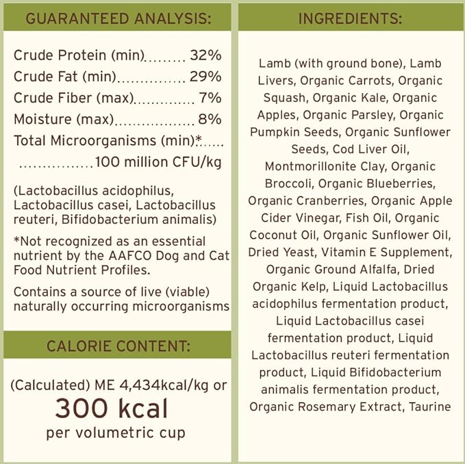 - Premium freeze dried raw dog food made with grass-fed lamb raised without antibiotics, steroids or added hormones and with USDA certified organic fruits and vegetables. Grain free