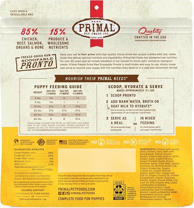 Primal Freeze Dried Puppy Dog Food, Pronto Mini Nuggets; Scoop & Serve, Complete & Balanced Meal; Also Use As Topper or Treat; Premium, Healthy, Grain Free, High Protein Raw Dog Food (25 oz,Pack of 2)