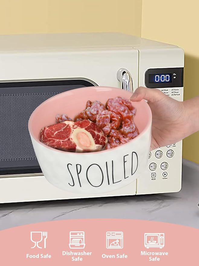 - Ceramic Material: This ceramic dog bowl is made of food grade ceramic, heavy duty. Non-toxic and tasteless, microwave safe, protect your beloved pet's food safety. The smooth porcelain surface is delicate to the touch, flush and clean, also dishwasher safe