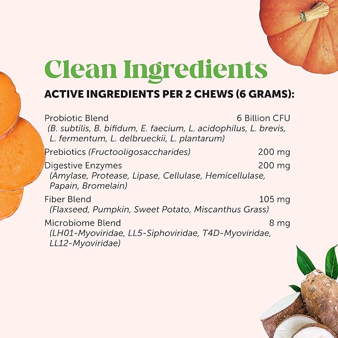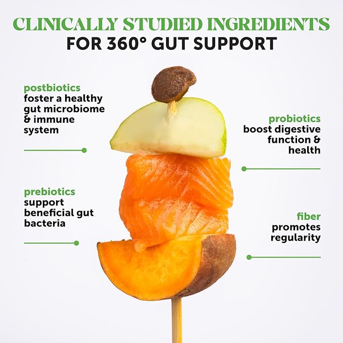- Provide maximum support for their gut, immune, and bowel health: These easy-to-give chews contain key functional ingredients to help ease tummy troubles and grow healthy gut microbiomes, so your dog can feel their best. Our unique blend of natural soluble and insoluble fibers work together with other natural ingredients to improve stool quality, helping them feel more comfortable when it’s time to go. Plus, your dog will absolutely love the delicious natural chicken flavor!