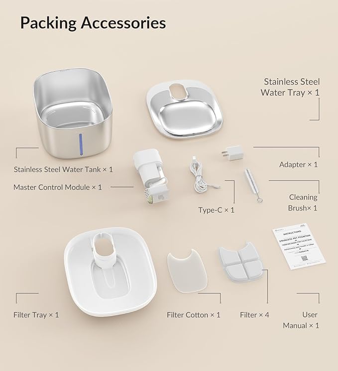 - Material : NO.1 Pet Water Fountain, Stainless Steel