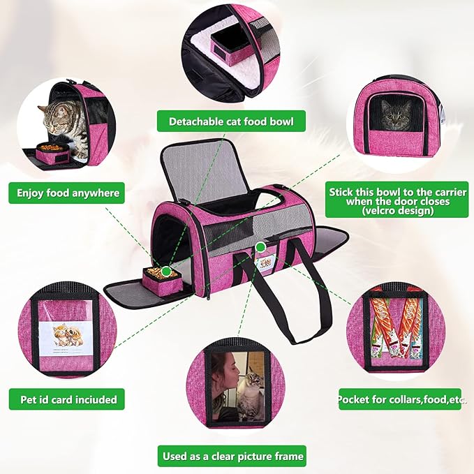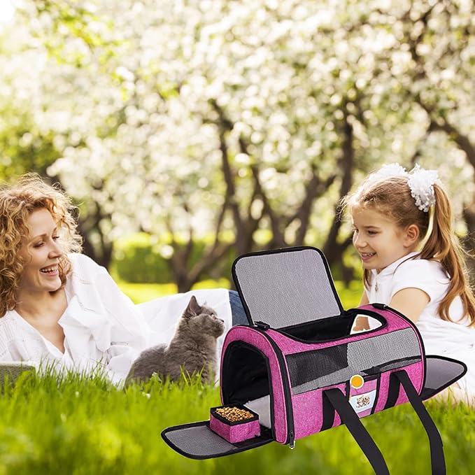 - ๐ใ๐๐ฎ๐ซ๐๐๐ฅ๐ & ๐๐จ๐ฆ๐๐จ๐ซ๐ญ๐๐๐ฅ๐ใThe large cat carrier comes with a collapsible FOOD BOWL(In the bag pocket). The dog carrier comes with a removable base insert, which creates a solid surface for your pet to stand on, along with a removable & hand washable cozy fleece pet bed, which offers a cozy sleeping space for your traveling pet