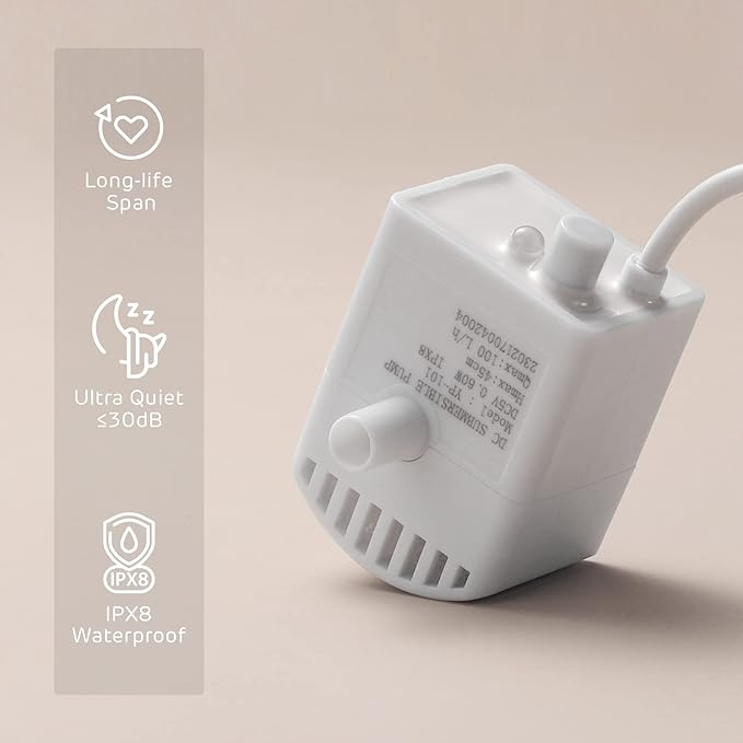 - Whisper Quiet Pump: super quiet when working in the water fountain, inaudible to you and your pet.