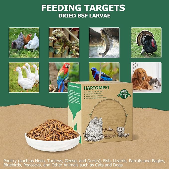 - Empowering Poultry Health: Revel in extraordinary health benefits that invigorate your poultry's well-being - fortified eggshells, amplified energy, and egg production. With calcium levels 85 times that of conventional mealworms, itβs perfect for molting, supplying vital protein and calcium sans extra supplementation.
