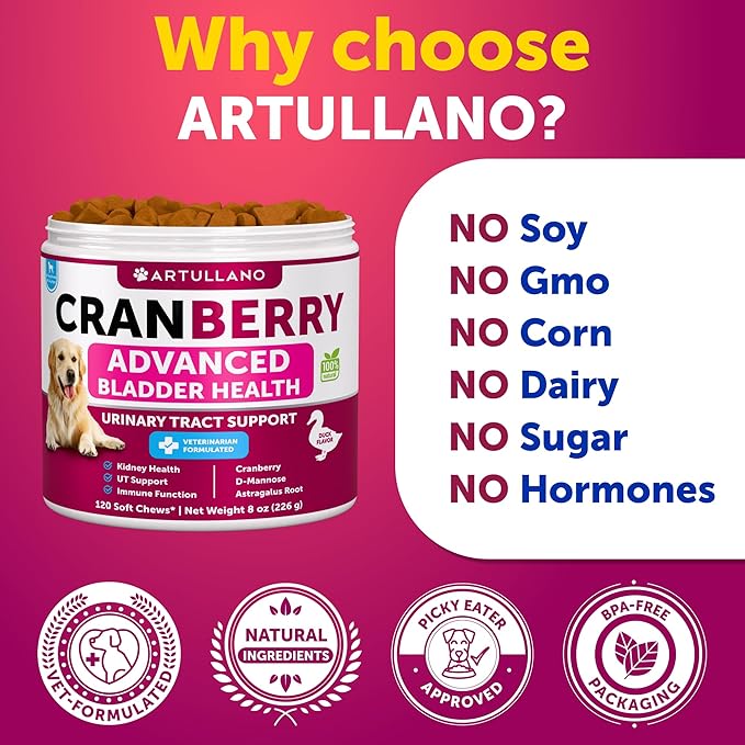 - DELICIOUS CRANBERRY SUPPLEMENT - Irresistible real duck flavor in each chew, rendering traditional dog cranberry pills for urinary tract infection a thing of the past. Cranberry chews for dogs