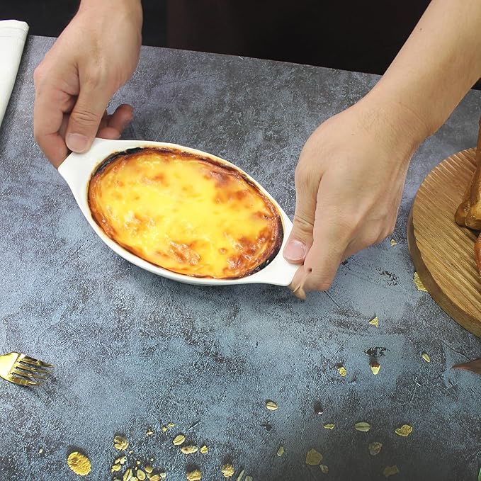 - Premium Materials: Our Au Gratin dishes are made of high-quality ceramic materials, fired at temperatures above 1200°C, contain no heavy metals and lead, will not absorb taste and odor, are thick enough to maintain an even temperature and keep food warm, Great for stacking to save more cabinet space.
