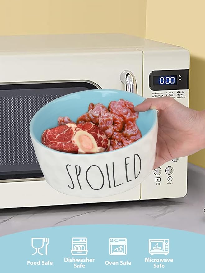 - Ceramic Material: This ceramic dog bowl is made of food grade ceramic, heavy duty. Non-toxic and tasteless, microwave safe, protect your beloved pet's food safety. The smooth porcelain surface is delicate to the touch, flush and clean, also dishwasher safe