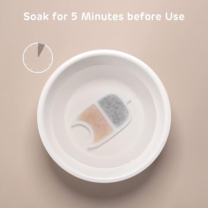 - Kind Reminder: Before the replacement, please soak the carbon filter for 5 minutes and then rinse it with clean water for 30 seconds. Otherwise, the water may not pass through the filter.