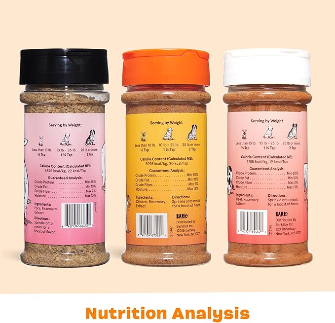 Barkbox Beef, Chicken, Ham Dog Treat Topper - High Protein Ingredient Meal Mixer, Rosemary Extract for Large & Small Breeds, Elevate Food Dining, Shake & Pour for Bowls (Pack of 3)