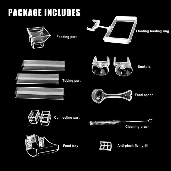 - 【PERFECT FEEDING】The transparent shrimp feeding tube provides a designated feeding area, effectively preventing the food from scattering and spreading to the whole aquarium, which not only reduces waste but also maintains the water quality and creates a healthy and comfortable living environment for your fish and shrimp. Anti-fish pinching grill prevents pet fish and shrimp from breaking into the feeding tube.
