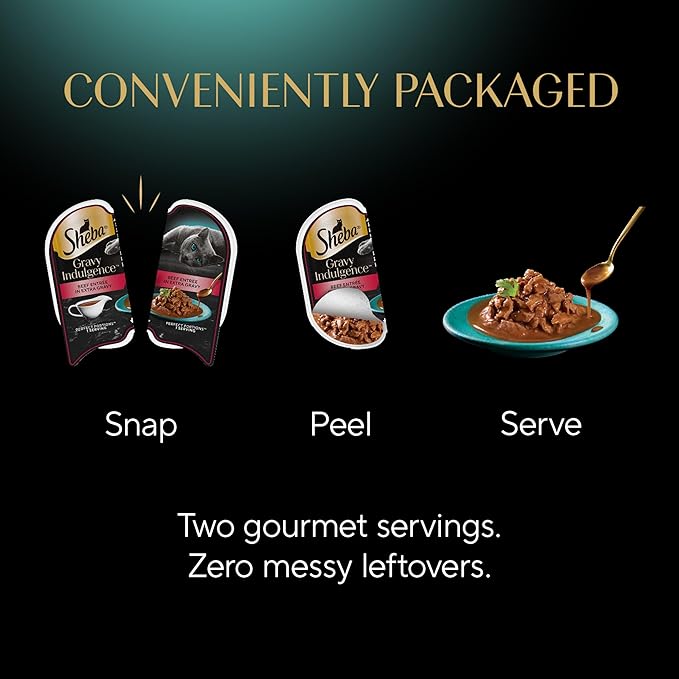 Sheba Gravy Indulgence Adult Wet Cat Food Beef Entree in Extra Gravy, 2.6 oz. Twin-Pack Trays (24 Count, 48 Servings)