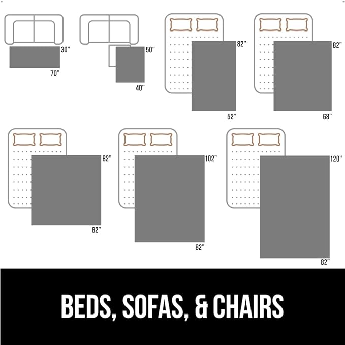 - BEDS, SOFAS, AND CHAIRS: blanket measures 68” x 82”; available in many sizes for all spaces; sizing aligns with bed and sofa sizing for a perfect fit; machine wash and dry