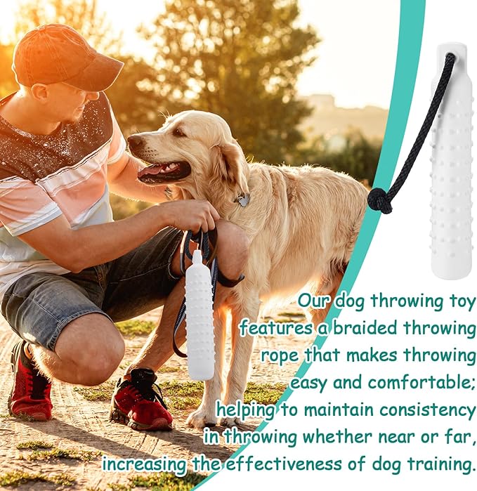 - Convenience in Throwing: our dog throw toys include the braided throw rope, making it extremely easy and comfortable to throw; Whether near or far, it helps keep the throw consistent, increasing the effectiveness of your dog's training; The bright color design stimulates the dog's curiosity and is easy to find in swimming pools, beaches, grass, etc.