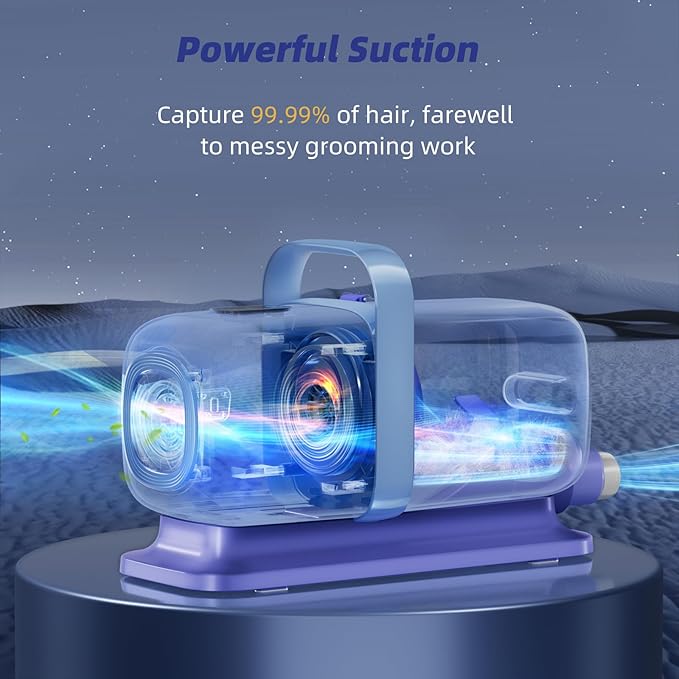 - š¶ćPowerful Vacuum SuctionćThe Buenkee dog grooming kit comes with a powerful vacuum up to 15000pa, which can trap 99.99% of pet hair and dander into the dust cup while grooming. Pet hair won't spread all over the house. And there's no need to clean the workspace afterward.