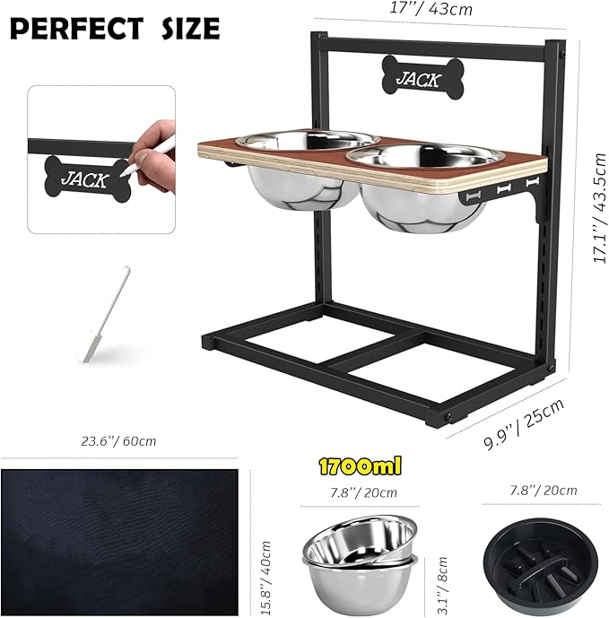- SUITABLE FOR LARGE AND MEDIUM DOGS: The raised dog bowl feeder is perfect for large and medium dogs, and it comes with a free white pen that you can use to write on the sign.