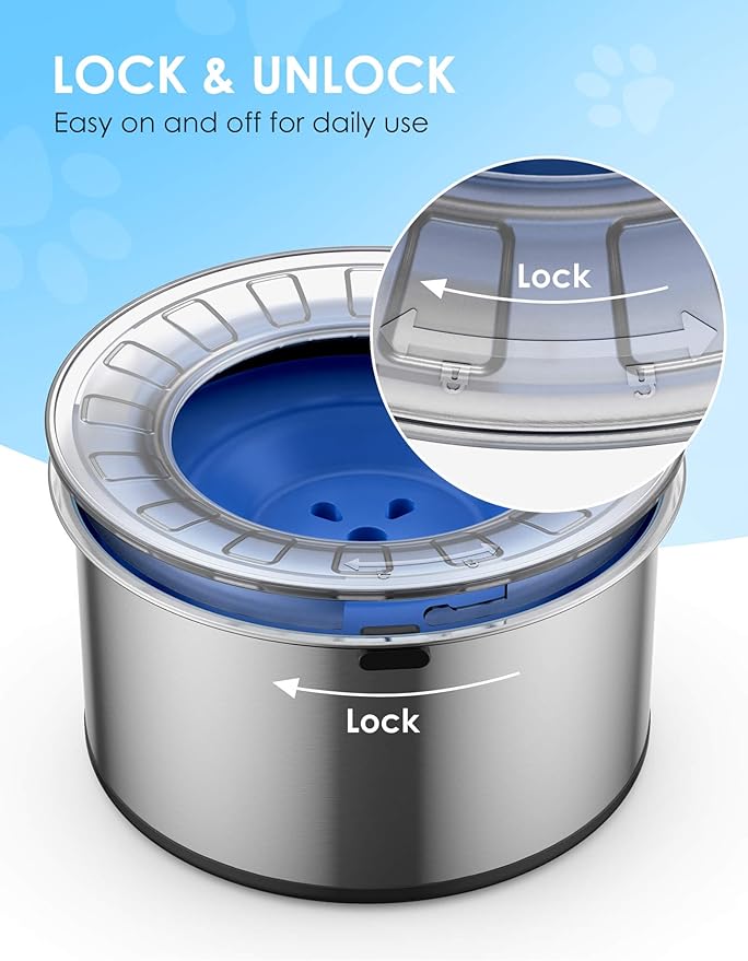 - 【Healthy Drinking Behavior】The self-adjusting floating disk is a good special design to slow down pet's drinking speed. Slower drinking means no more choking & vomiting and healthier furry friends. You can also take off the lid if your dogs have good drinking behavior and want to drink smoothly.