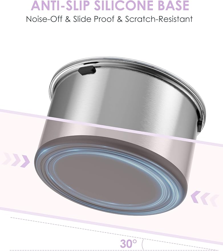 - 【Convenient & Widely Use】The lid is lock and unlock easily. Clean the bowl by unlock the lid, and put the bowl body, lid and floating disk in the dishwasher, very convenient and safe. The anti-spill lid and floating disk, as well as anti-slip silicone base make the bowl not only good for home use, but also great in cars, RVs and boats.