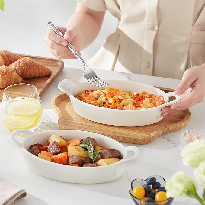 MALACASA Small Casserole Baking Dishes for Oven, Ceramic Oval Baking Dish Sets of 4, 8" x 5" Inch Au Gratin Baking Pans with Handles for Roasting, Lasagna, Pie, Baking Meat & Vegetables, White