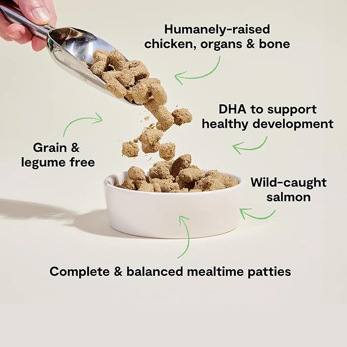 Open Farm, Freeze Dried Raw Puppy Food, Patties with 95% Meat, Organs & Bone, Complete Meal or Freeze Dried Dog Food Mixer, Chicken & Salmon Puppy Recipe, 10.5oz Bag