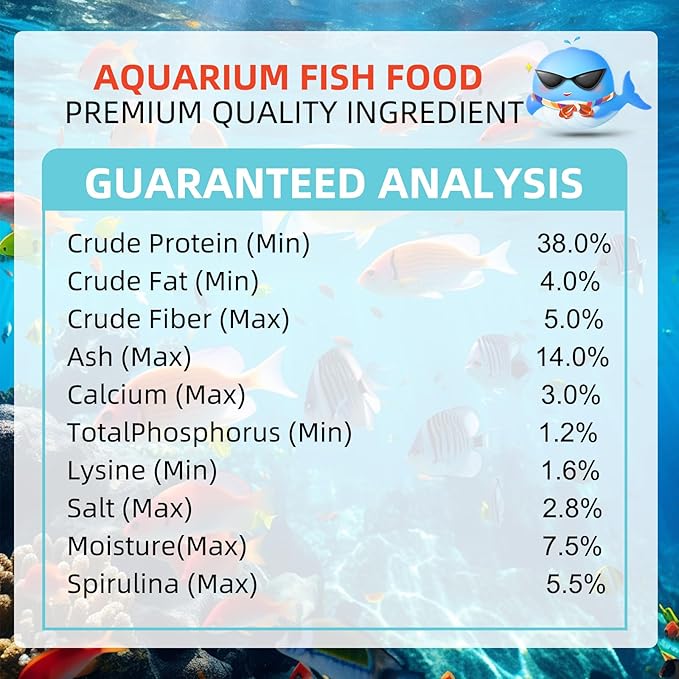 - NATURAL INGREDIENTS, RICH IN NUTRITION:The Fish Food is made from 100% natural ingredients, including shrimp, krill meal, fish meal, wheat flour, soybean meal, algae powder, yeast extract, spirulina powder, etc. It is rich in high quality protein and vitamins, providing comprehensive nutrition for both marine and freshwater fish, helping them grow healthily and improving their color.