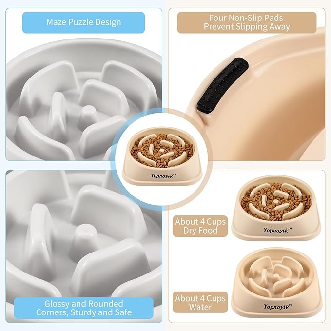 - PREMIUM DESIGN: The slow feeder dog bowl is meticulously designed to promote healthy eating habits in pets, particularly dogs prone to rapid eating. Its intricate maze-like pattern inside the bowl creates multiple obstacles for the food, compelling the pet to eat at a slower, more deliberate pace. The bowl can slow down your dog's eating time by 21X. This design not only helps in reducing the risk of choking and bloating but also aids in digestion by encouraging smaller bites.