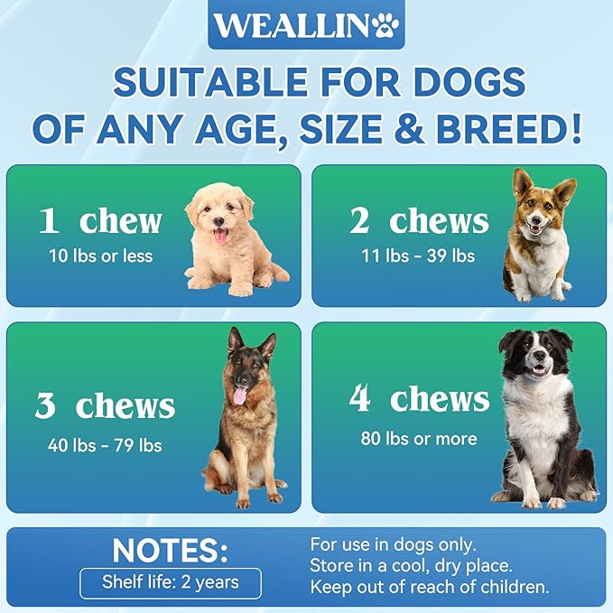 - Striving for Excellence: At WEALLIN, we are committed to protecting your pet's health with the highest quality, purest products to enhance their health and well-being. Our mission is to create comprehensive health solutions that ensure your dog thrives and help them become your most loyal companion.
