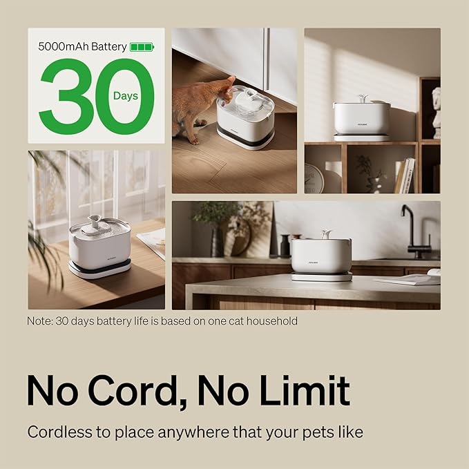 - Exceptional Battery Life - Powered by 5,000mAh built-in rechargeable battery, the PETLIBRO wireless small dog water fountain delivers fresh, clean water on a full charge. It will keep your pets well-hydrated even during power cuts or when you take short trips.