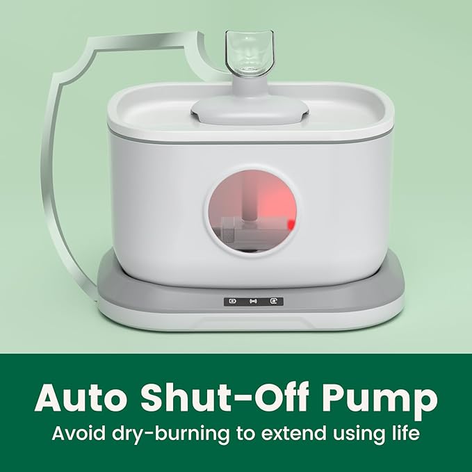 - 2.6L/88oz CAPACITY & AUTO SHUT-OFF PUMP: The pet water dispenser meets weekly water needs of a 3-4KG kitty, you won't refill every day. Through the big viewing window, you can see the water level anytime. When water shortage, the pump will turn on RED light to alert you and automatically cut OFF to prevent dry burning
