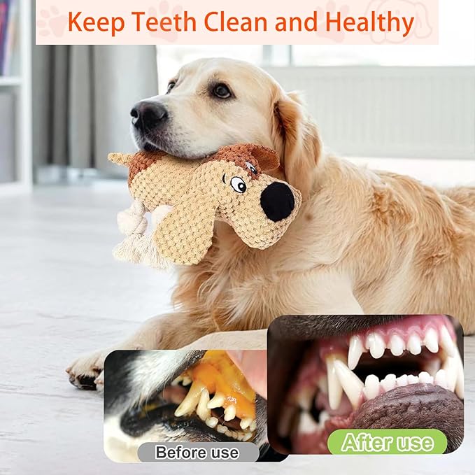 - 【Squeaky Dog Toys】Our plush dog toys are packed with a squeaker in the body and crinkle paper inside the ear, it will make a squeaky sound when you press the dog toys or your dog chew it,igniting your dog's excitement and stimulate your dog's hunting instinct, enhancing interaction and engagement.