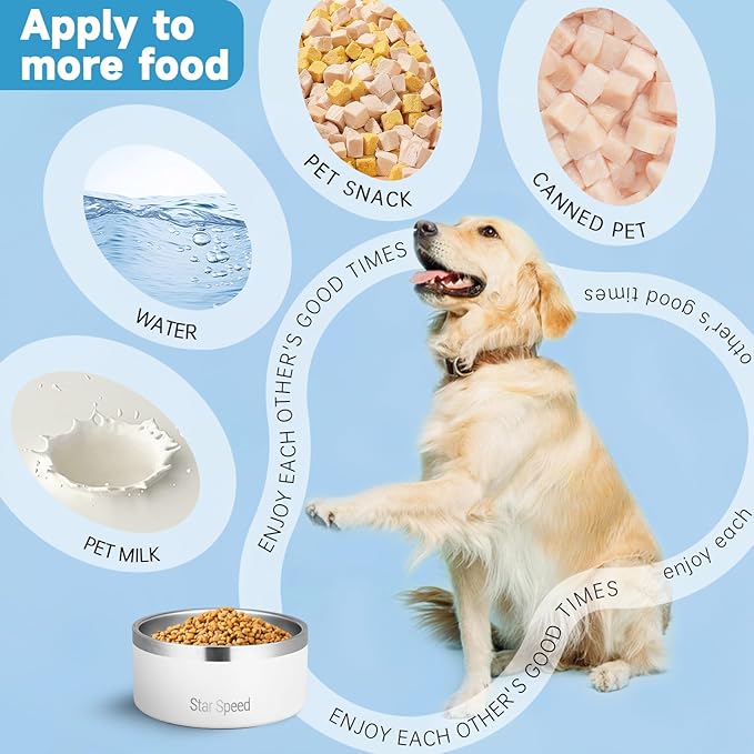 - 【Non-slip and No spill】 StarSpeed dog water bowls are weighted dog bowls with non-slip rubber rings. These designs prevent dog bowls from slipping and food and water spills. This feature is especially beneficial when using it as a dog food bowl or a large dog bowl