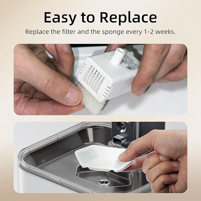 - For Optimal Use - Soak the filter for 5 minutes and rinse for 30 seconds before use. To maintain the filtering effect, recommended to replace the filters every 1-2 weeks. If you have multiple pets, it is recommended to clean the fountain and change the filter more often.