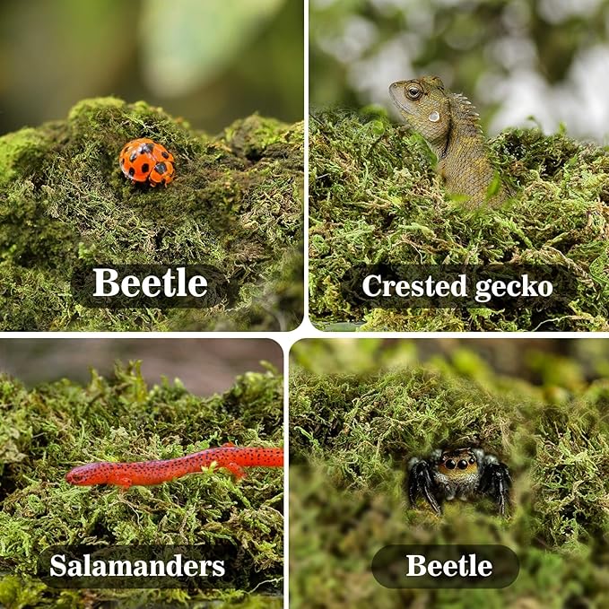 - Moisture Retention - Moss is highly absorbent and retains moisture well, making it ideal for reptiles that tropical or require higher humidity levels environments. The sphagnum moss can allowing it to maintain moisture levels in the enclosure for an extended period, keep the humidity stable and prevents the substrate from drying out too quickly, provide natural and comfortable habitat for these reptiles.