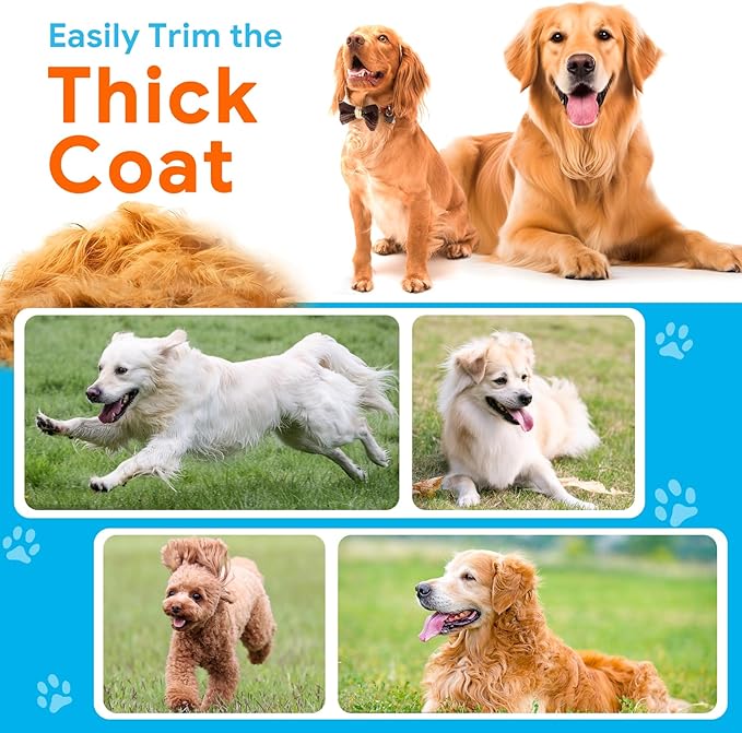 - Effortless Grooming with Superior Blades: The Aibors cordless dog clipper features durable stainless steel blades that stay sharp for precise and efficient trimming. Whether dealing with thick coats or matted fur, this clipper trims smoothly without pulling or hurting your pet's skin, ensuring a pleasant and safe grooming session.