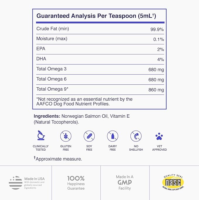 - NASC CERTIFIED: Wonder Paws is a member of the prestigious National Animal Supplement Council (NASC), which ensures strict quality control standards. Wonder Paws fish oil for dogs is NASC Certified, so you know you are getting a trusted product that adheres to stringent quality controls. Our dog salmon oil is made in the United States with Norwegian sourced salmon oil in an FDA registered and GMP Certified facility.