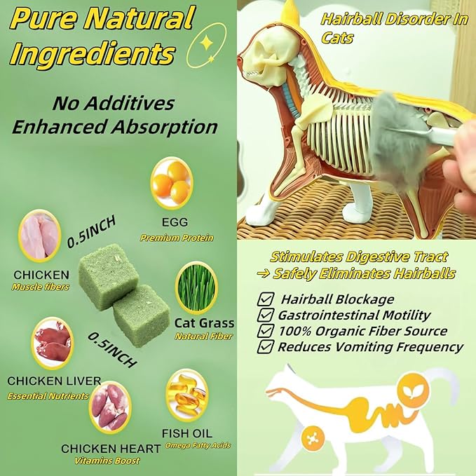 - 1. Nutritious Cat Chewing Toys: Cat grass teething treat is made from fresh cat grass and chicken,fish oil without artificial flavors,preservatives, or colors. Kitten edible grass snack is an irresistible snack that most cats love. Cat freeze dried grass pellet is processed into small pieces, more convenient for kitten to eat. Cat molar stick is the perfect reward to keep your cat relaxed, energetic, and happy all day long.